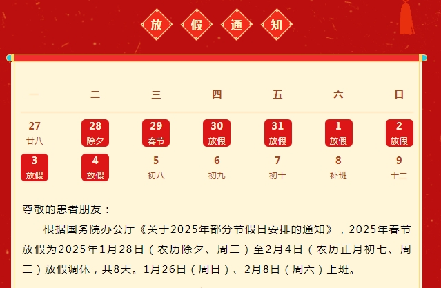 假期不停诊 | 黑料网 春节假期门急诊安排