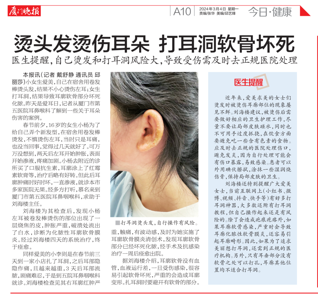 烫头发烫伤耳朵,打耳洞软骨坏死