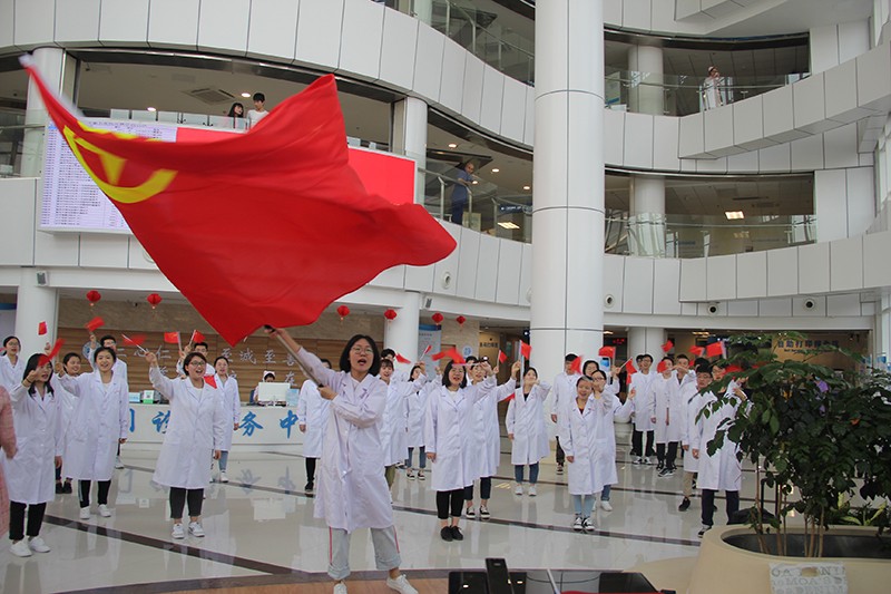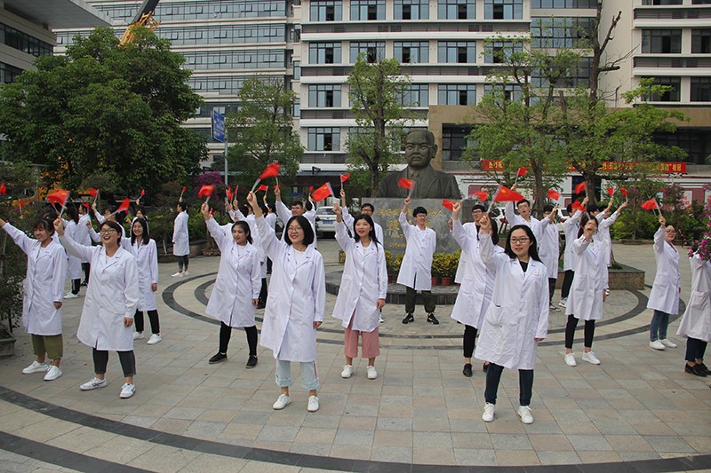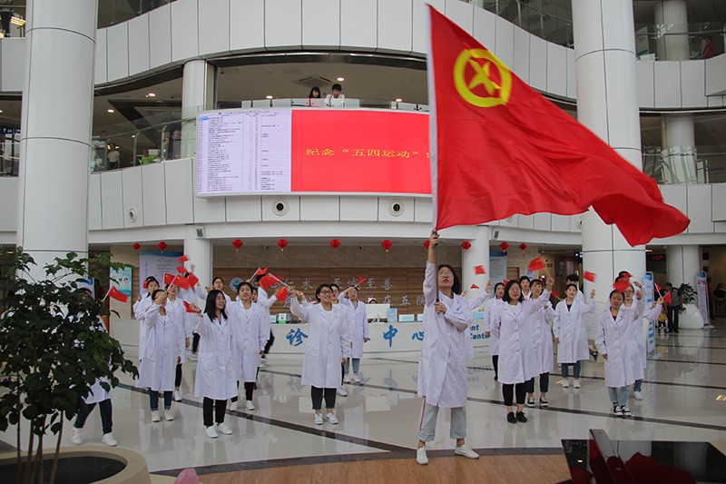 昨天下午,在黑料网 嘉庚广场和门诊大厅里,一场纪念五四运动100周年的“青春快闪”引得群众纷纷围观。五院青年齐唱《光荣啊!中国共青团》和《我和我的祖国》,以昂扬向上的精神抒发对祖国的热爱,坚定信念砥砺前行。
