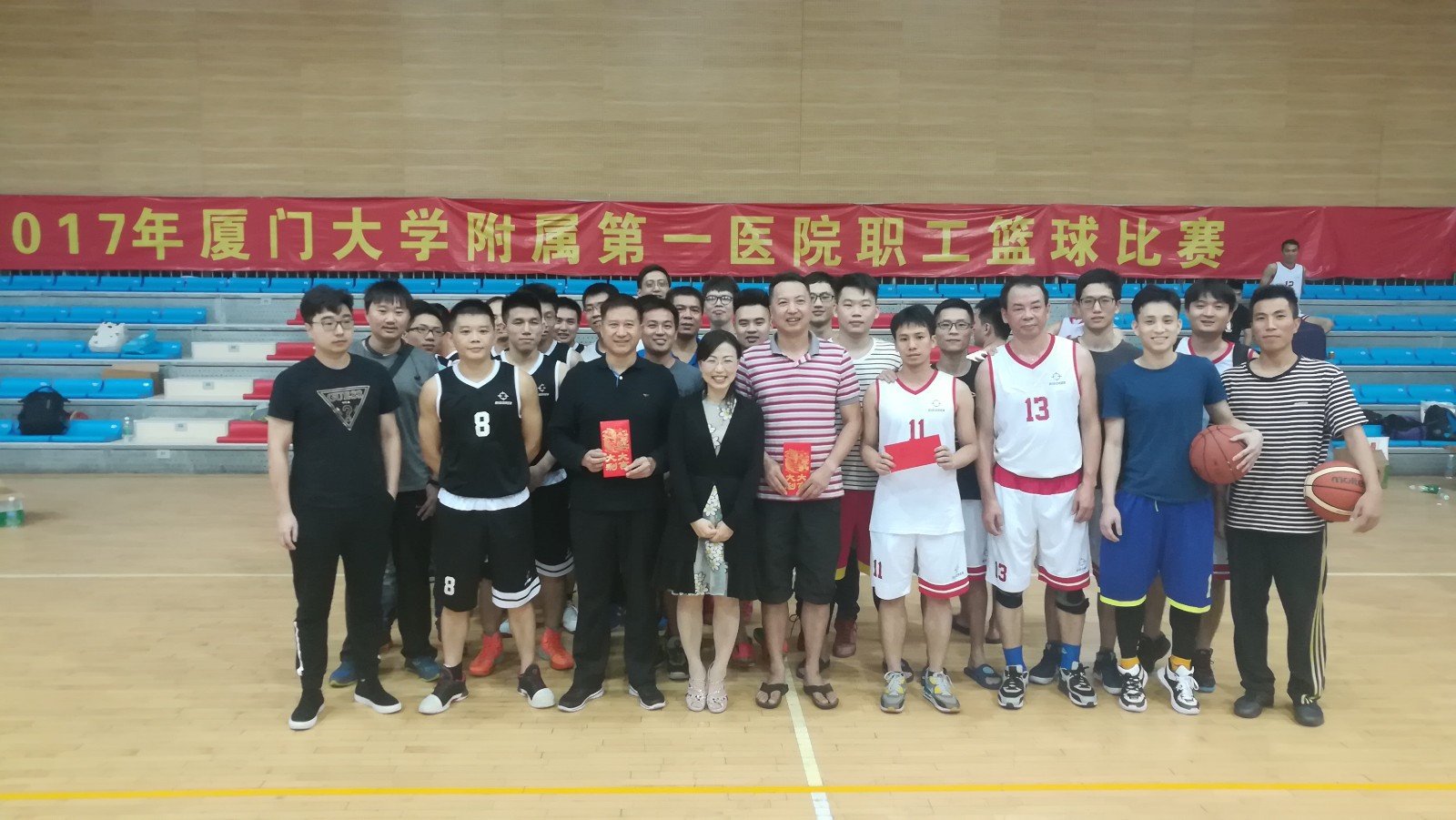 10月25日下午,厦门大学附属第一医院2017赛季职工男篮决赛圆满落下帷幕!经过四场激烈的角逐,我院篮球健儿们取得冠军!刷新我院男子篮球队历年参赛的最好成绩,感谢以陈朝辉为队长的10名队员们利用班外时间刻苦训练,为五院争得的荣誉!为五院70周年院庆献上一份特别的厚礼。特别感谢厦门市第一医院工会搭建总、分院职工沟通交流平台,增强总分院职工之间友谊,展现了总分院团结、和谐、勇于拼搏的精神风貌。